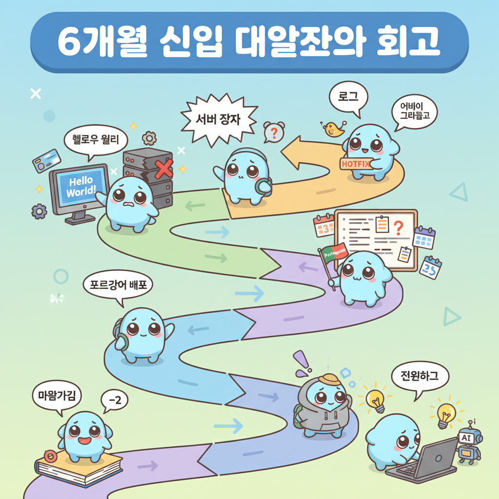 신입 개발자로서 6개월간의 경험과 배운 점을 회고하고, 개발자로서의 마음가짐을 정리한 글입니다.