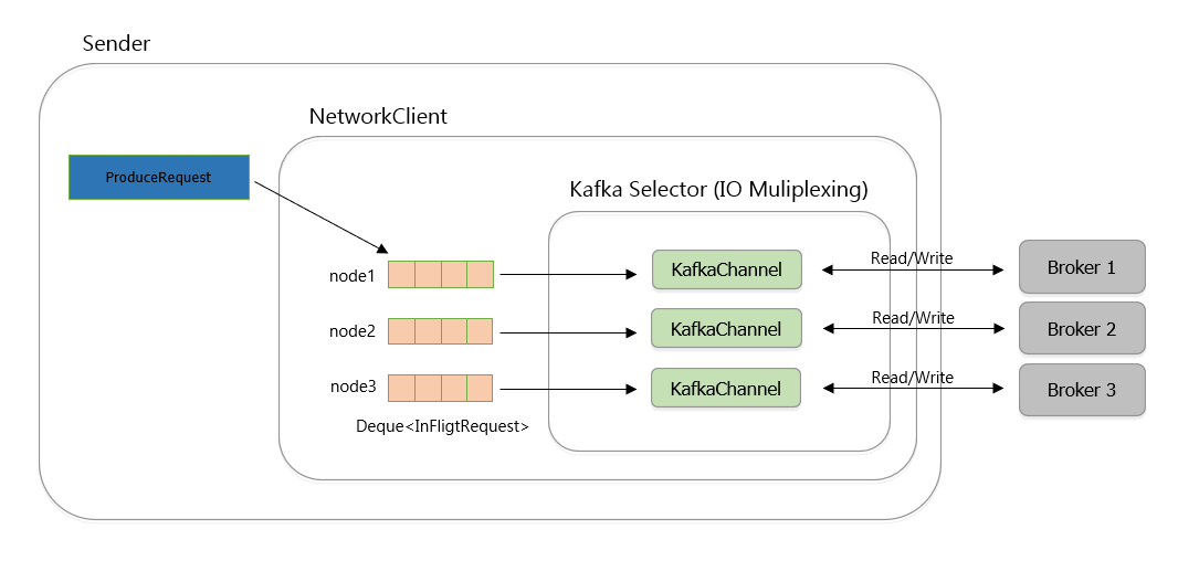 (TCP 커넥션 및 오버헤드 감소 + I/O 효율)순서 보장 및 흐름 제어를 위해 InflightRequests 라는 대기열을 먼저 거침