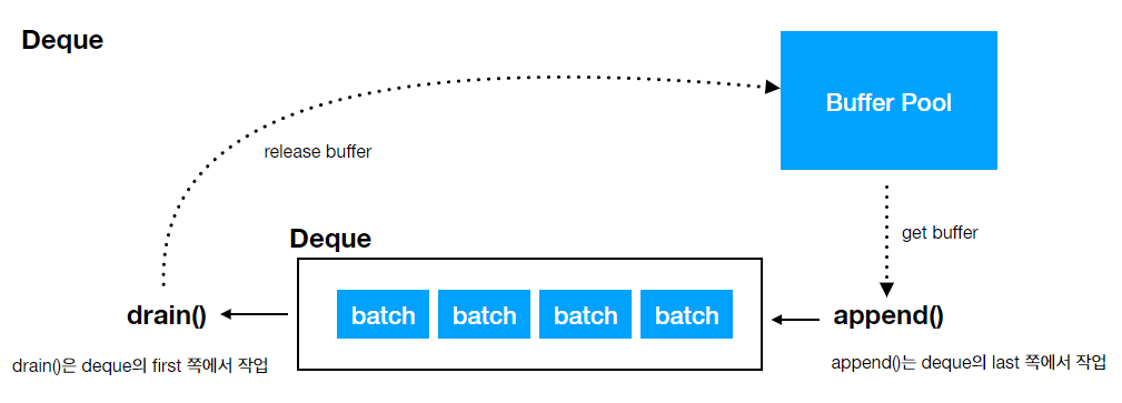 - RecordBatch 생성 시, BufferPool 에서 RecordBatch 가 사용할 ByteBufer 를 받아온다. -