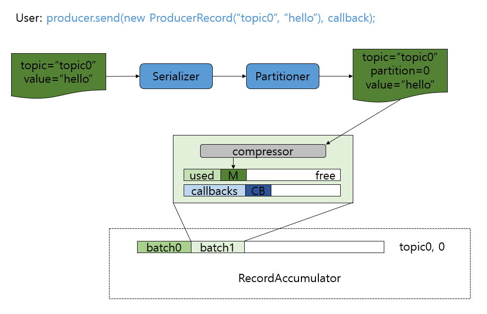send 가 호출되면, Serializer -> Partitioner -> Compression 작업이 이뤄지고