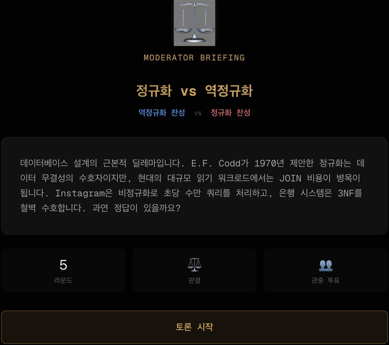 - 주제에 대한 설명후 토론 시작