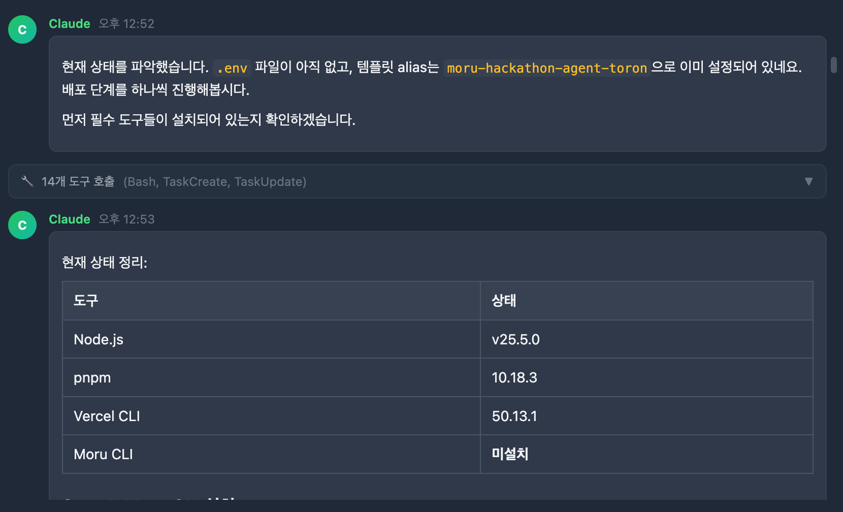 하지만, 배포는 Vercel & DB 는 Supabase & Agent SDK 는 Moru 로 전부 나한테 낯설었다.