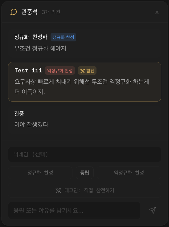 - 관중석에선 의견을 제시할 수 있게 한다.