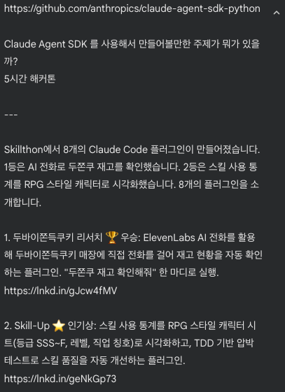 신청한 이유는 AI Agent SDK 가 뭔지 궁금하기도 했고, 오랜만에 다른 도메인의 코드를 짜보고 싶다는 생각이 있었다.